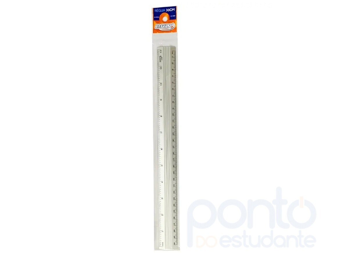 A Régua De Alumínio 30 cm Brw é ideal para uso escolar ou escritório. Possui escala de 30 cm e do lado oposto escala em polegadas. Material resistente que não quebra facilmente.