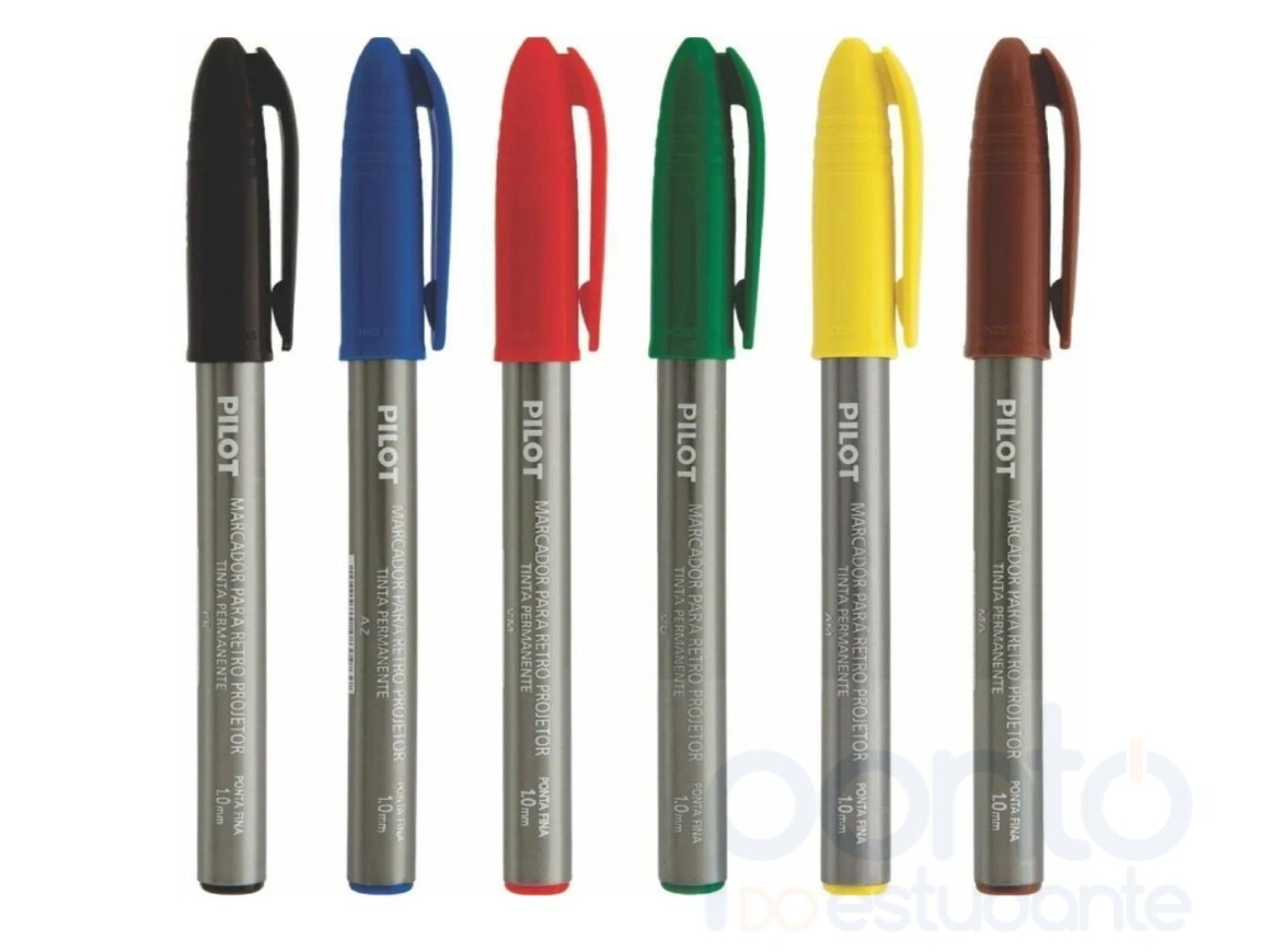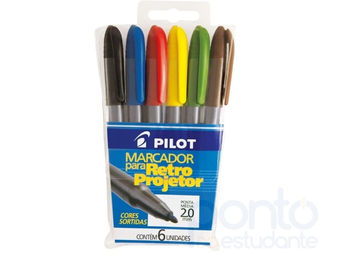 Produto vendido em forma de kit, com 6 cores de marcadores para retroprojetor, ponta média, 2,0mm , Pilot.