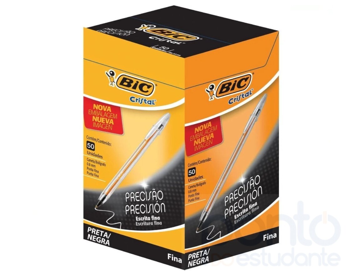 Caneta esferográfica Bic Cristal Fina.Com uma linha de materiais da Bic, você garante toda a qualidade necessária para realizar suas tarefas e trabalhos impecáveis. BIC Cristal Fina é uma esferográfica de ponta fina, para aqueles que preferem uma caneta que entrega precisão e uma experiência de escrita macia. Tinta com fórmula BIC que permite uma escrita mais macia. Ponta fina: 0.8mm. Corpo hexagonal e tampa ventilada. Acompanha 1 caixa com 50 Bic cristal fina.Cor: Preta.