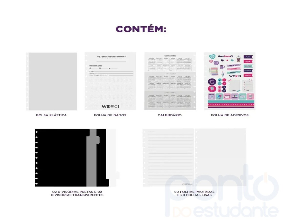 O tamanho intermediário entre o A5 e o Universitário permite que seja transportado na bolsa com facilidade e espaço adequado para anotações.