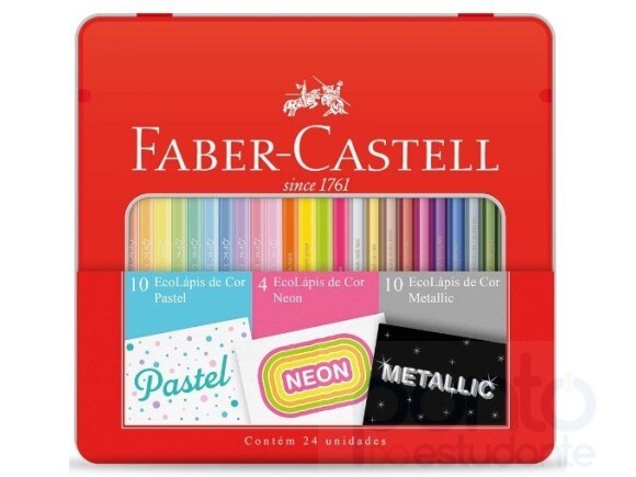 Kit Lápis de Cor EcoLápis Pastel Neon Metallic 24 Cores - Faber-Castell