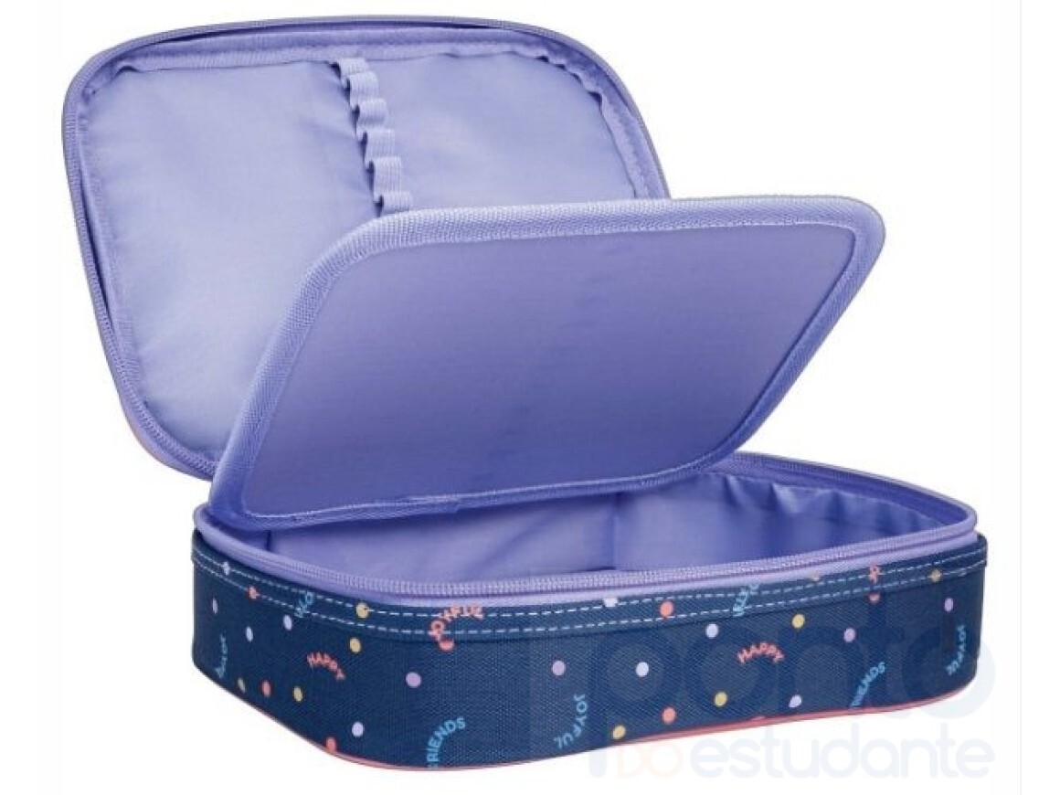 O Estojo Box Académie Dots é prático, espaçoso e ideal para quem possui muitos lápis, canetas e outros materiais e acessórios.