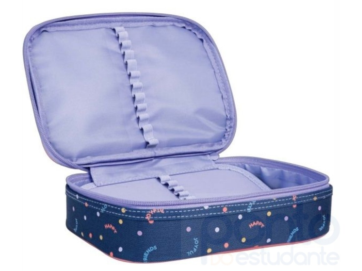 Além de facilitar seu dia a dia na escola, esse estojo possui material resistente, é estruturado, espaçoso e possui divisória central com elásticos que auxiliam na organização do material.