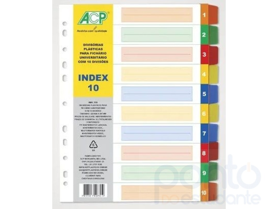 Com 10 Divisões coloridas para organização de documentos, matérias, etc.