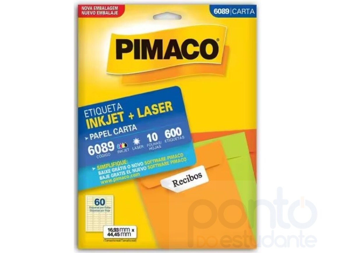 Etiqueta InkJet+Laser Carta 16,93mm x 44,45mm 6089 - Pimaco