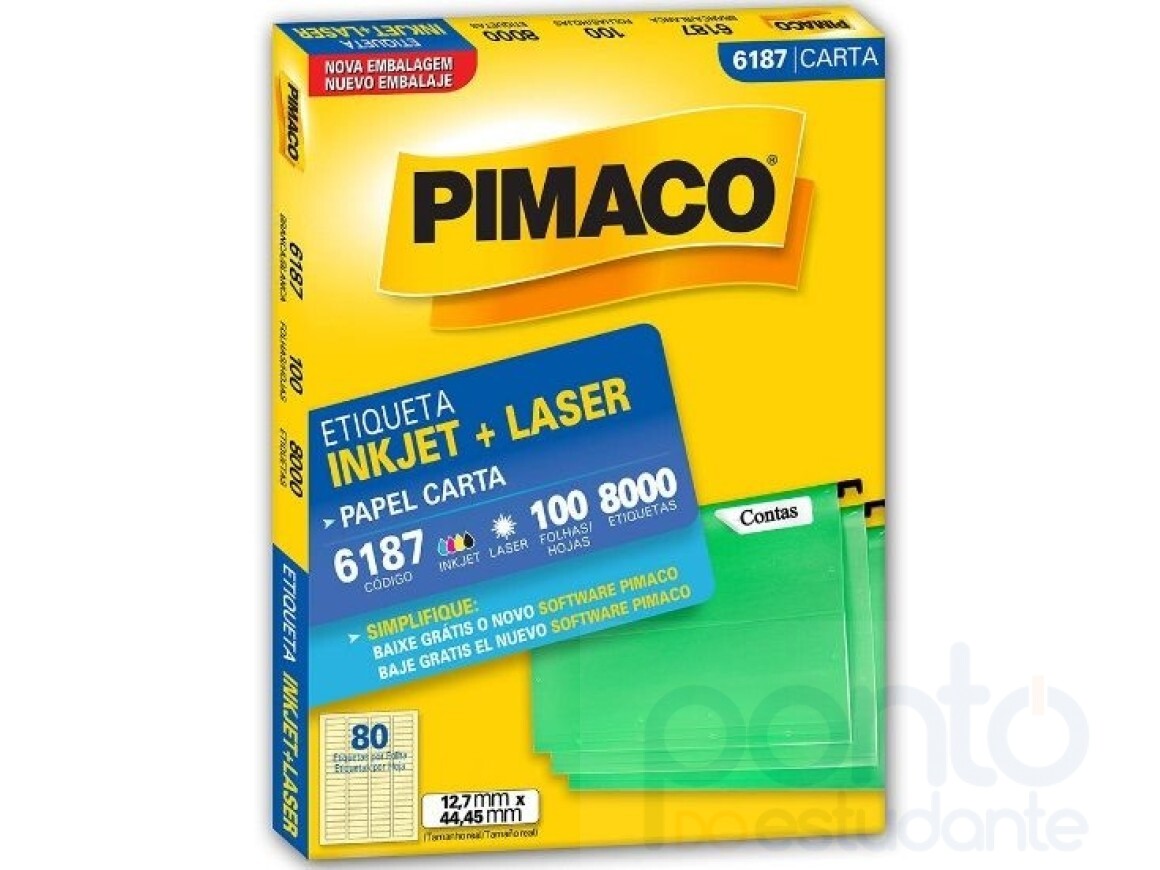 Etiqueta InkJet+Laser Carta 12,7mm x 44,45mm 6187 - Pimaco