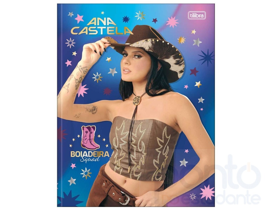 O Caderno Brochura Capa Dura Universitário Ana Castela 80 Folhas da Tilibra é perfeito para você que busca uma opção para organização da rotina de estudos com visual da cantora Ana Castela, boiadeira mais famosa do Brasil.