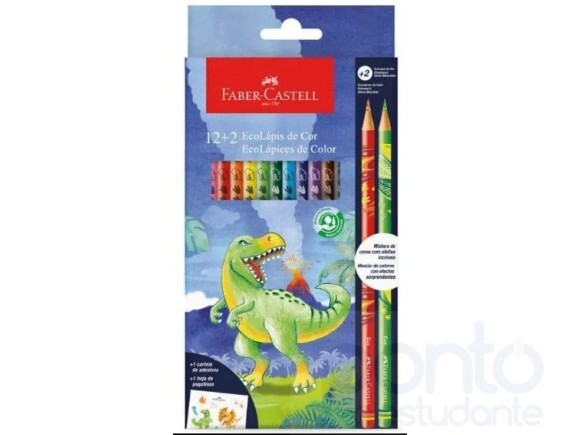 Lápis de Cor Dinossauro 12+2 Cores - Faber-Castell