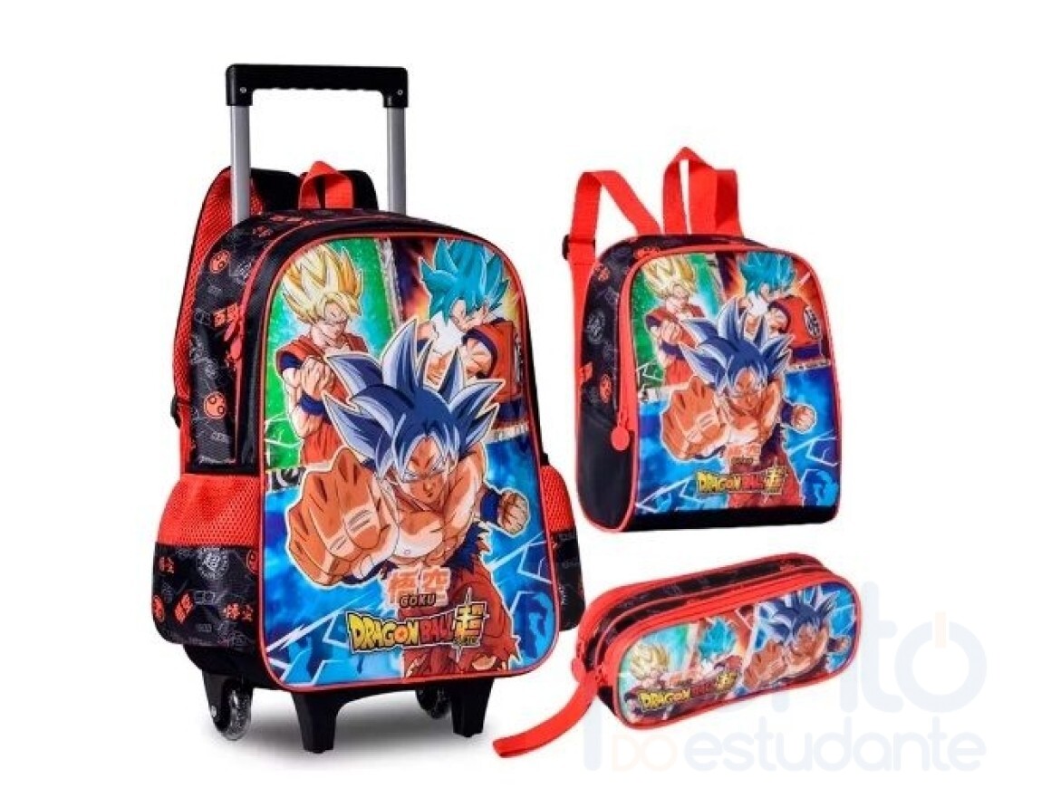 Chegou o Kit Mochila Dragon Ball Super de Carrinho Lancheira e Estojo da Clio Style, perfeito para a volta às aulas.