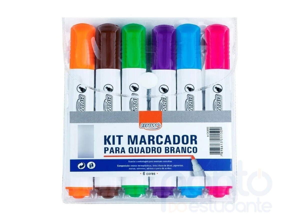 O Kit Marcador Para Quadro Branco BRW contém seis lindas cores que facilitam o destaque de tópicos e informações importantes. É ideal para uso em salas de aula ou reuniões corporativas.