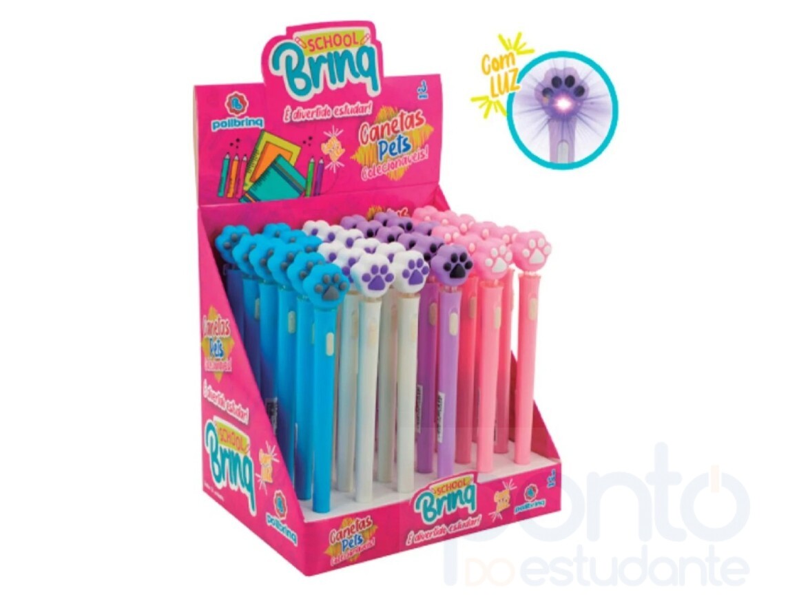 Caneta Esferográfica Pets Patinha com Luz Led Polibrinq!