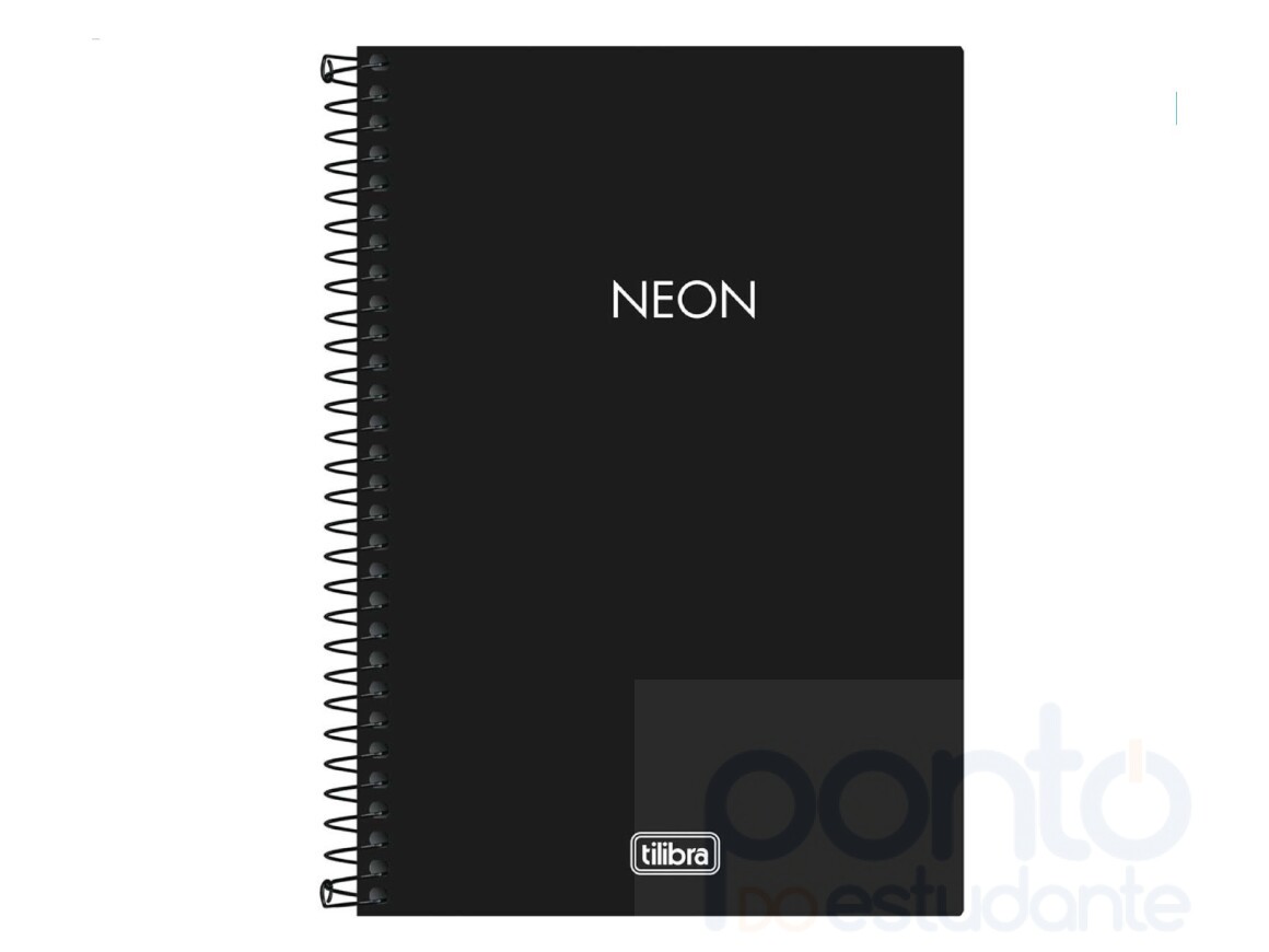 Caderno Tilibra Espiral 1/4 Capa Plástica Preto Neon 80fls Sem Pauta