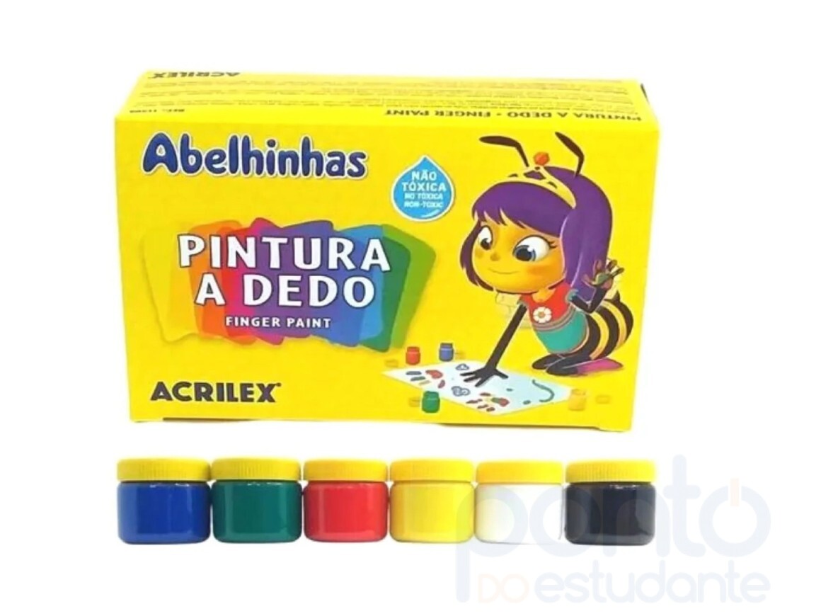 Pintura a Dedo Acrilex Contém: 6 cores em potinhos plásticos de 30ml cada