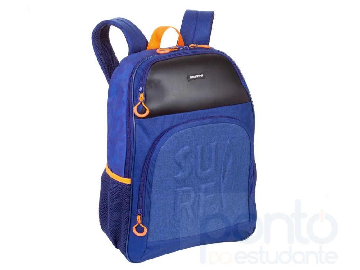 O design da linha Surf incorpora elementos que tem tudo a ver com o shape das pranchas e a vida de quem está sempre nadando atrás das melhores ondas: material emborrachado, painel 3D com textura jeans, estampa camuflada de tubarão e puxadores personalizados com cadarço. O resultado é essa mochila radical, mas cheia de funcionalidades: são dois bolsos frontais e o amplo compartimento principal, além de bolsinhos laterais em redinha. Para levar nas costas com conforto, a alça é espumada e tem ajuste de altura do ombro.