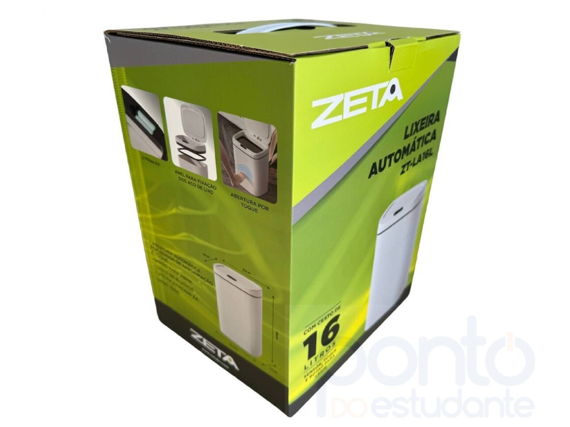 Lixeira automática de 16 litros Zeta, inteligente com sensor de aproximação e sensor de toque. Design moderno e clean, produto ideal para consultórios médicos, odontológicos, clinicas, escritórios.
