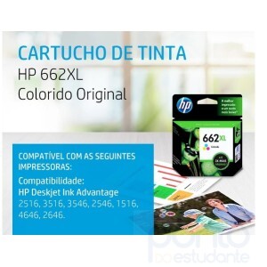 Cartucho HP 662XL Colorido Original (CZ106AB)